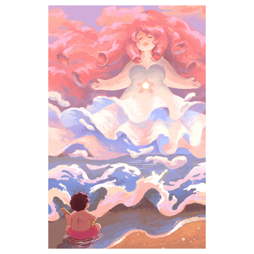 This Steven Universe poster features Steven playing ukulele for his mom.
