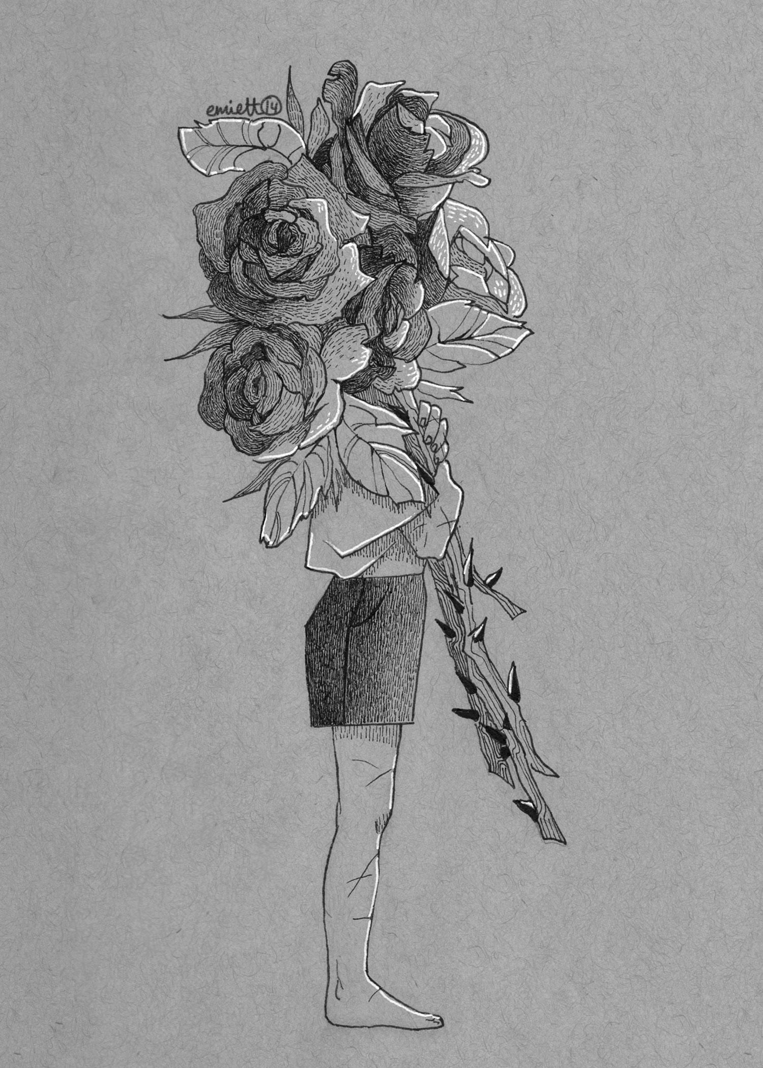 A mini print of a pen drawing on gray paper (with some juicy gel pen highlights)!