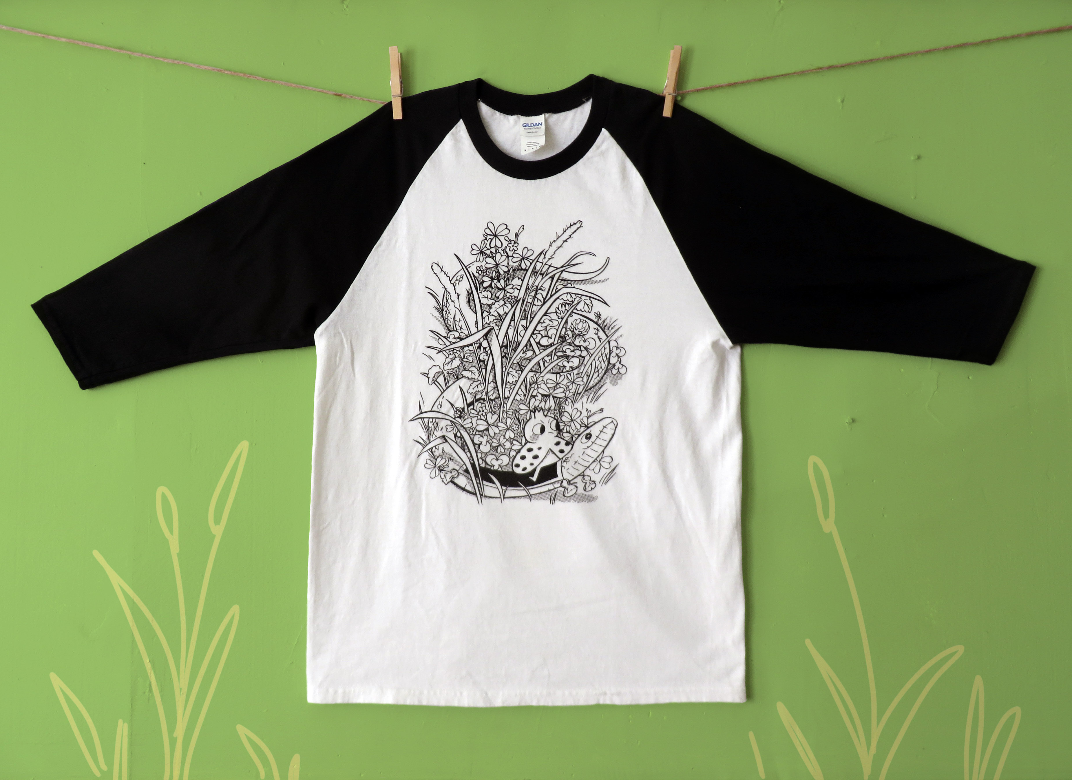 Unisex heavy cotton raglan T-shirt featuring Bug King and his royal snake steed on an slither through the sorrel. This T-shirt was hand screen printed at Cosmic Crown's studio in Virginia.