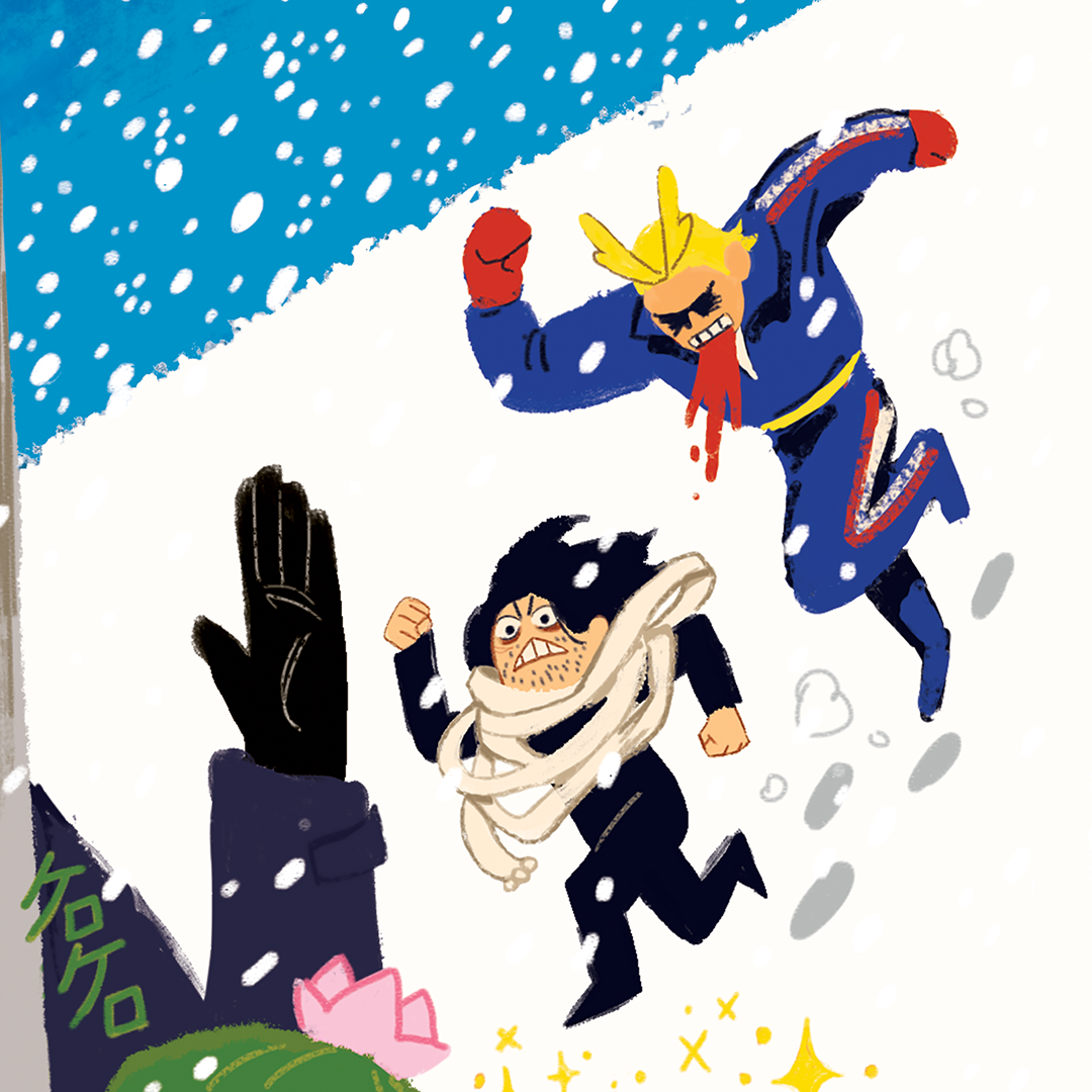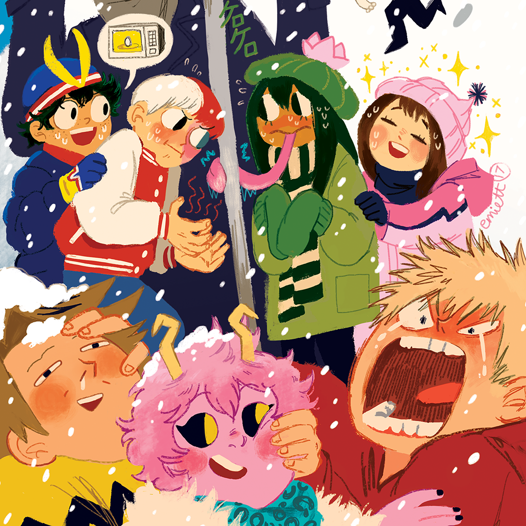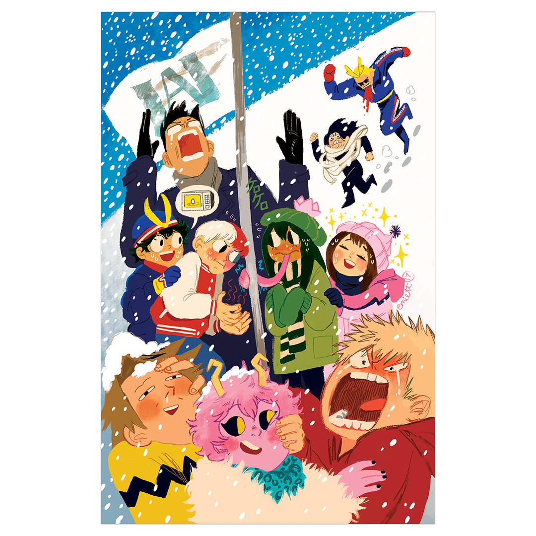 This My Hero Academia fan poster features a memorable winter day for all parties involved. Never dare Tsuyu because she's no coward and she WILL do it.